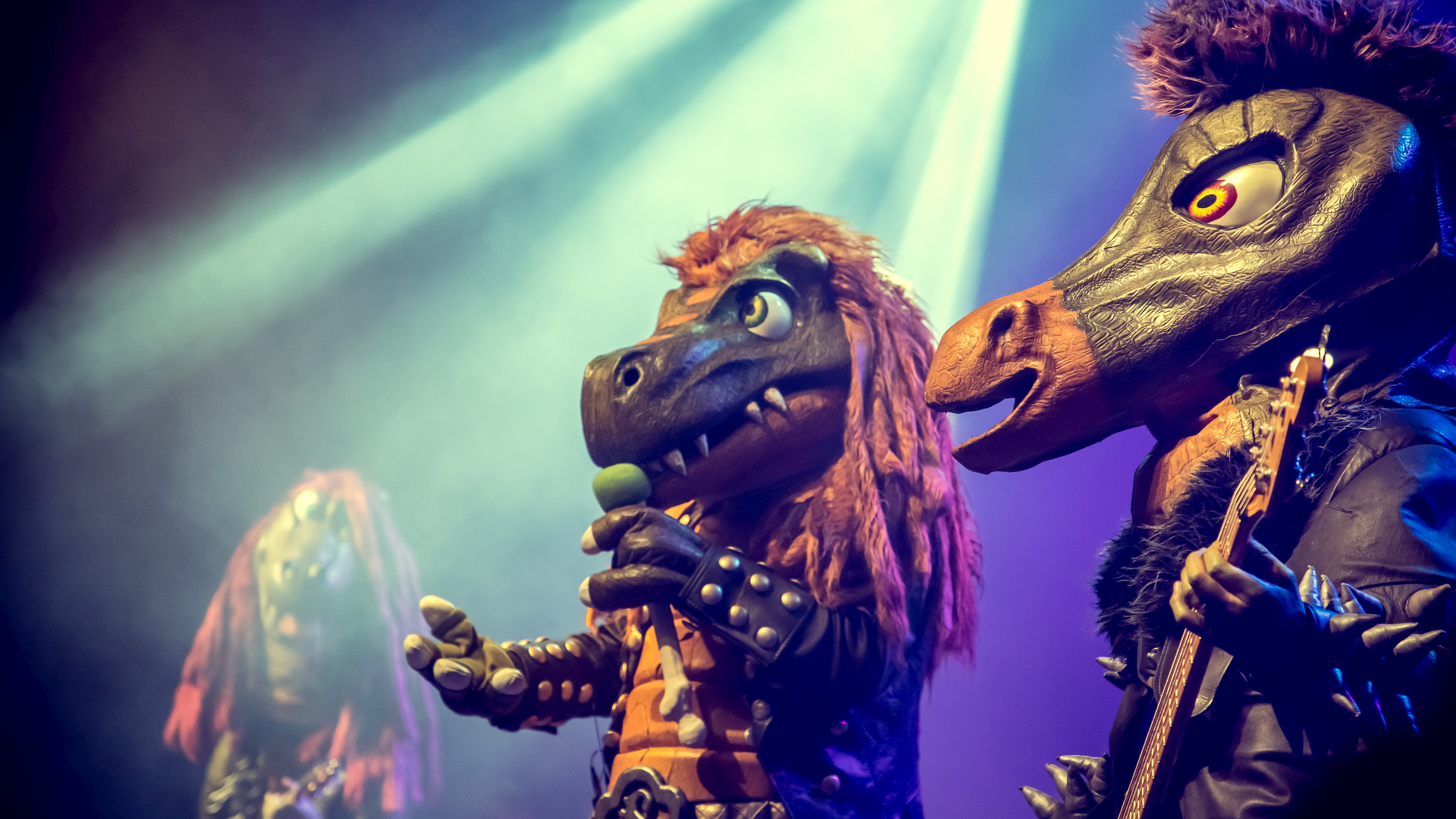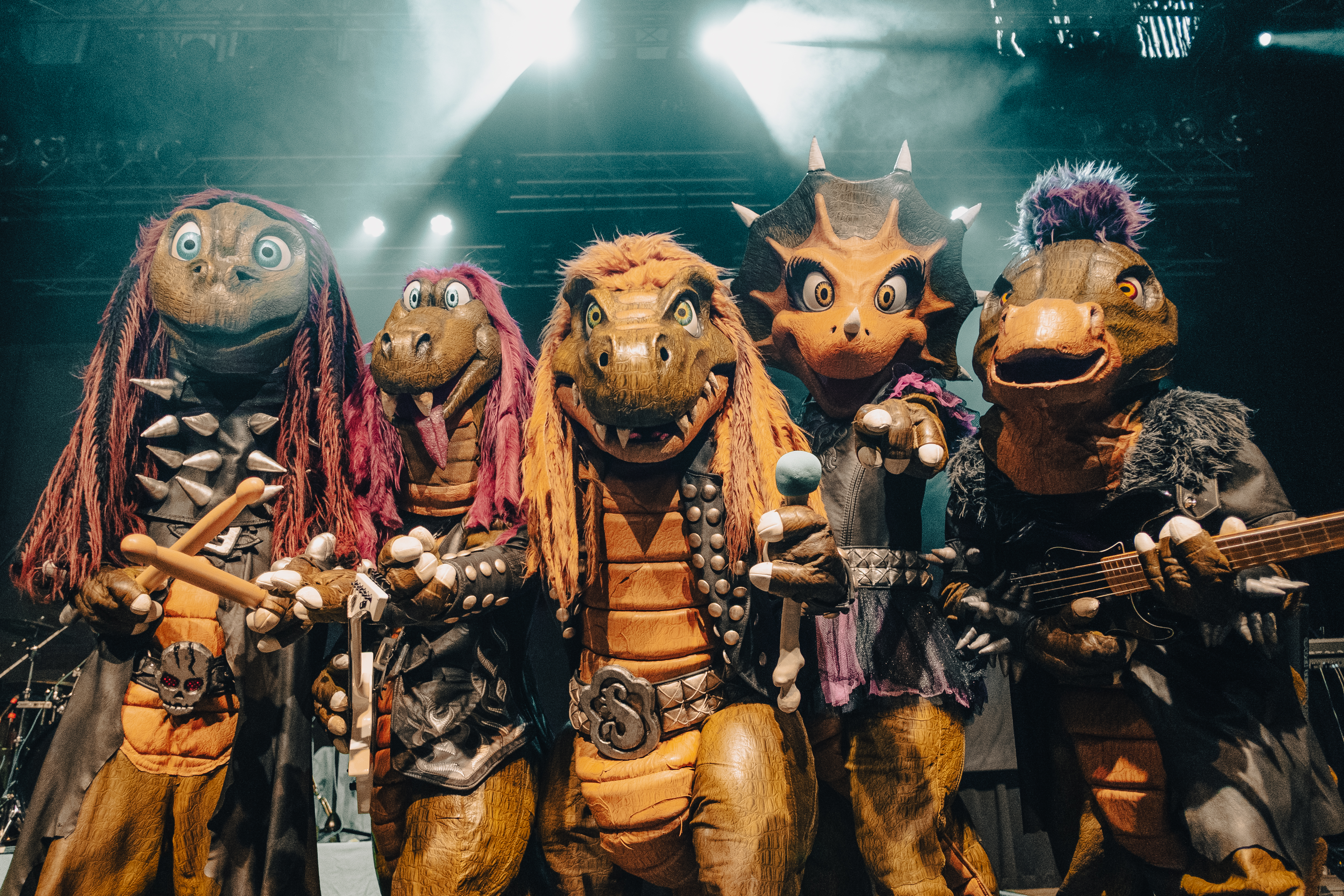 HEAVYSAURUS-Konzerte sind spektakulär: Licht, Nebel, Funkenregen, Luftballons und Konfetti, mit echter Livemusik von professionellen Musikern in Dino-Kostümen und einem Sound, der sowohl für Kinderohren geeignet als auch für Rockfans gemacht ist. Bei einem Heavysaurus-Konzert erlebt die ganze Familie eine echte Rockshow, kindgerecht und mit allem, was dazugehört. Dazu gibt es limitierte Meet & Greet Tickets für die kleinen größten Fans, inklusive Foto, Autogramm und Tatzen-Schütteln!